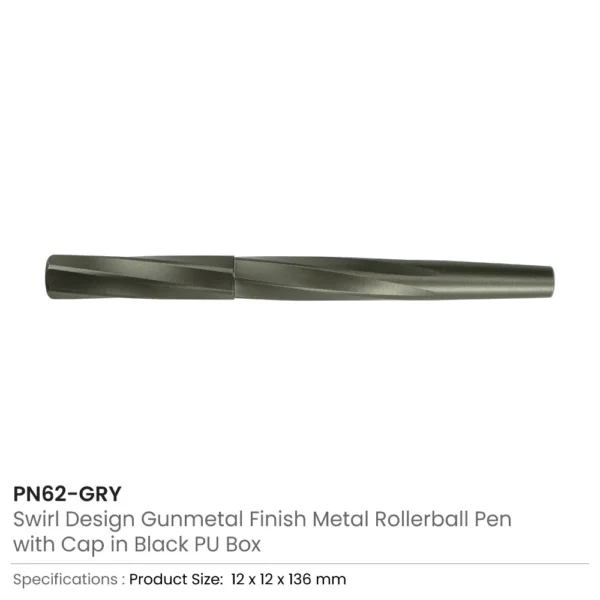 Rollerball Pens Swirl Design in Gunmetal Finish with PU Leather Box